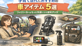 子育て世帯におすすめの車アイテムを厳選紹介。エアラブや収納グッズ、車内掃除アイテムなど、ファミリーカーを快適にする便利グッズを実体験ベースで分かりやすく解説します。