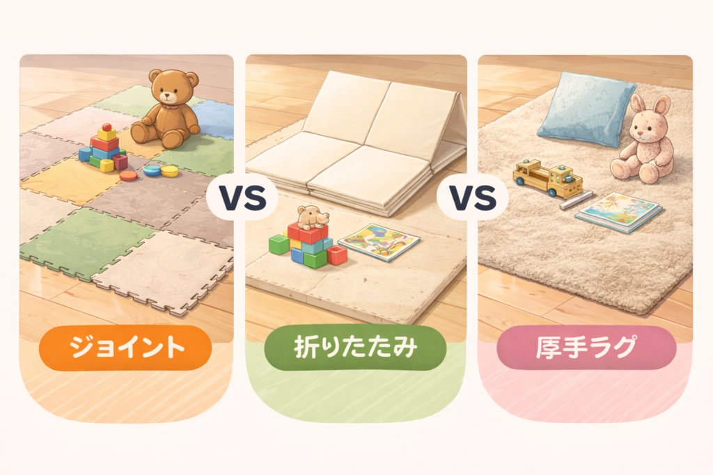 【比較表】ジョイントマット vs 折りたたみマット vs 厚手ラグ