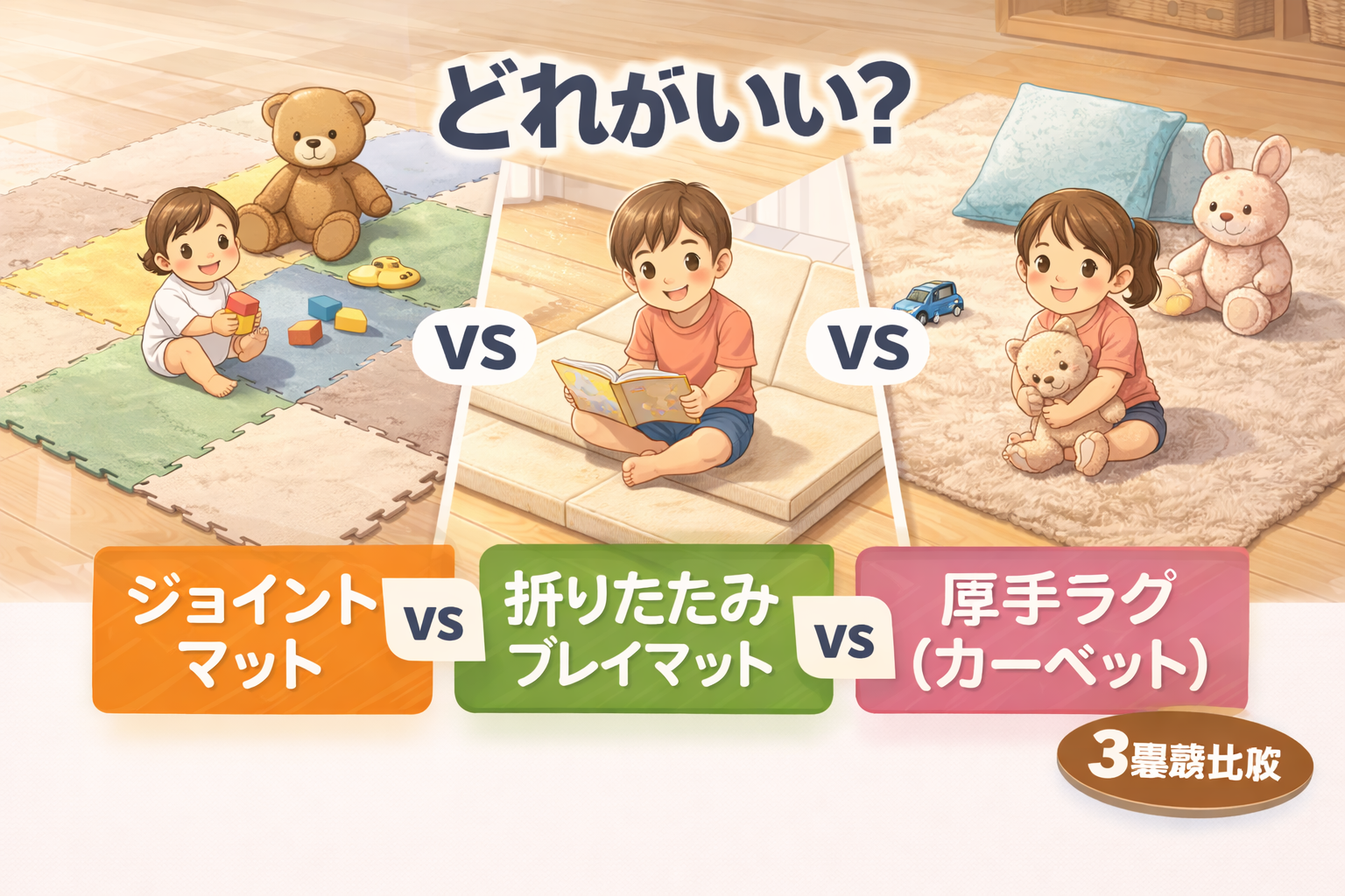 【比較表】ジョイントマット vs 折りたたみマット vs 厚手ラグ