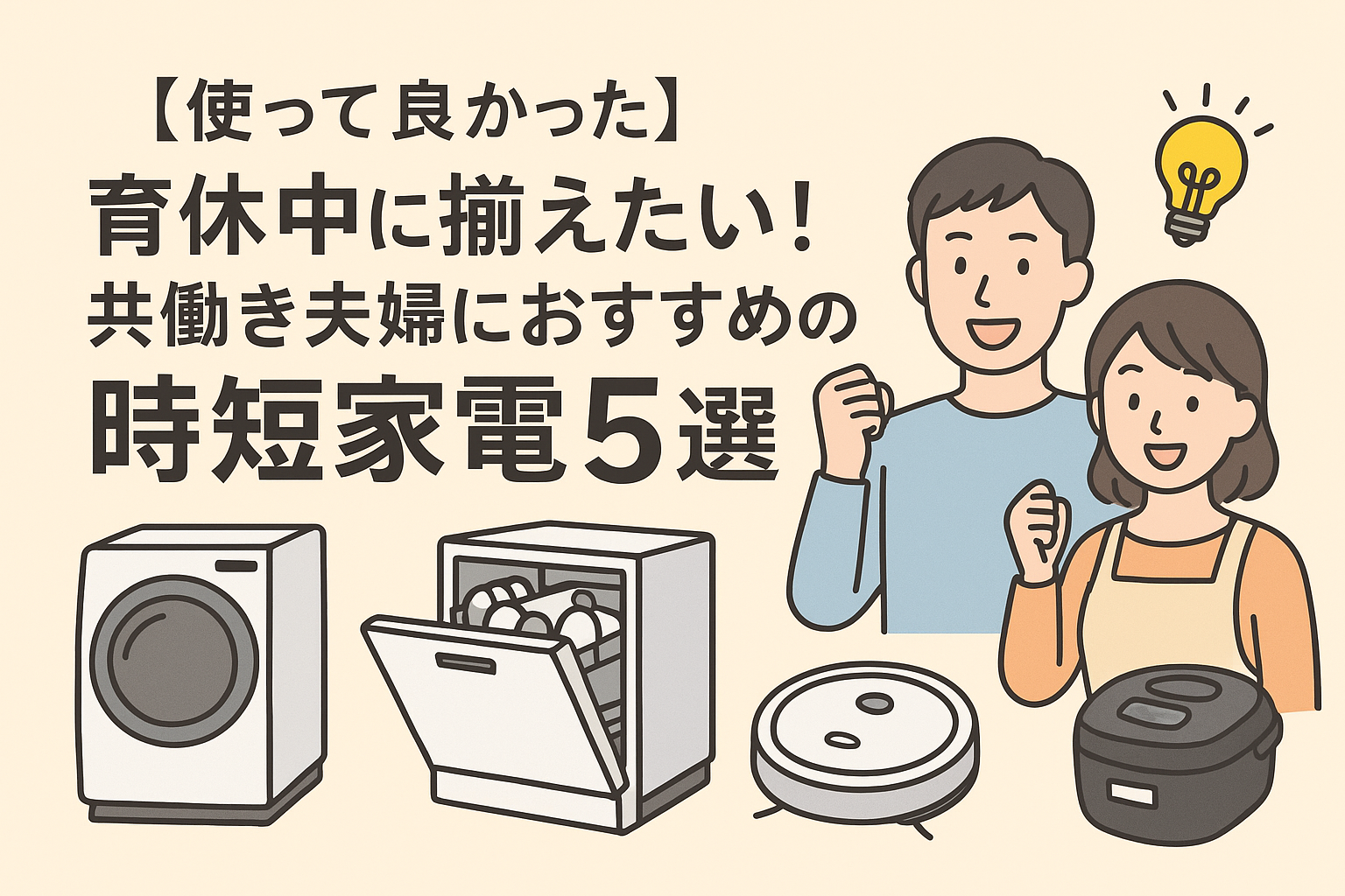 育児と家事の両立で疲れていませんか?本記事では、共働き夫婦が実際に使って「本当に買ってよかった」と感じた時短家電5選を紹介。洗濯・掃除・料理を自動化して、育休中でもゆとりある暮らしを実現しましょう。